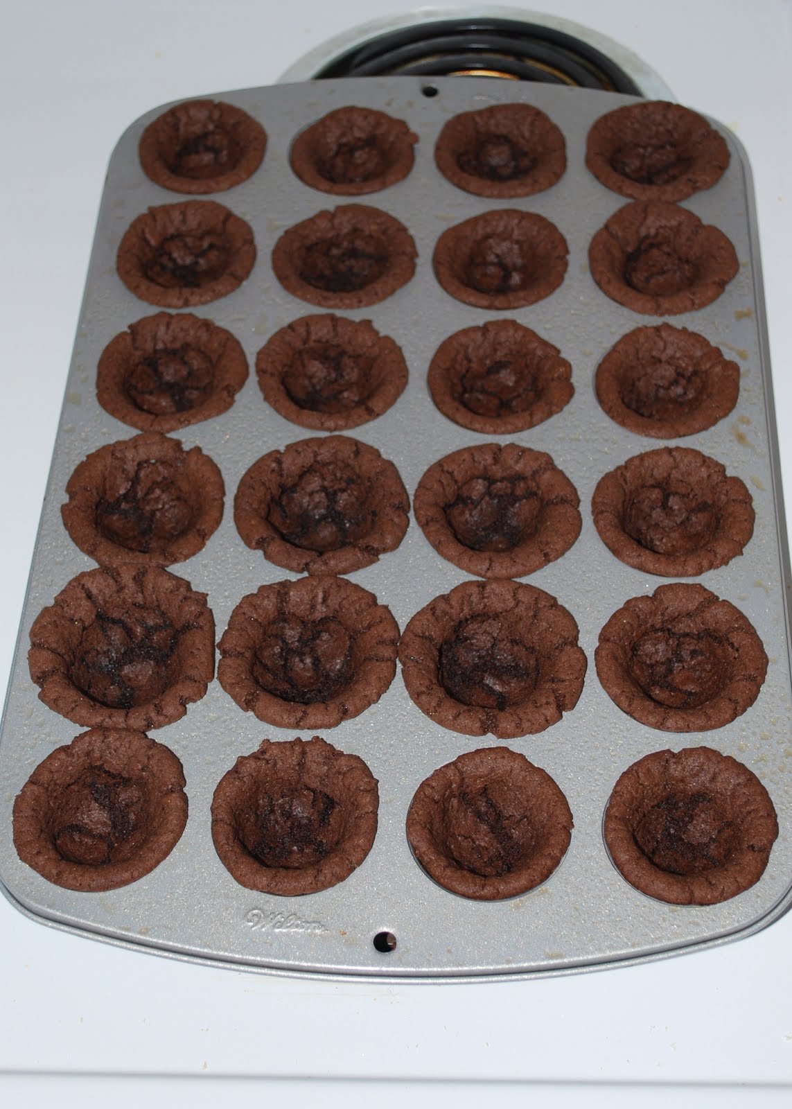 Beat well and press into mini-cupcakes. Bake at 375 for 8 minutes. Let cool while you make caramel sauce.